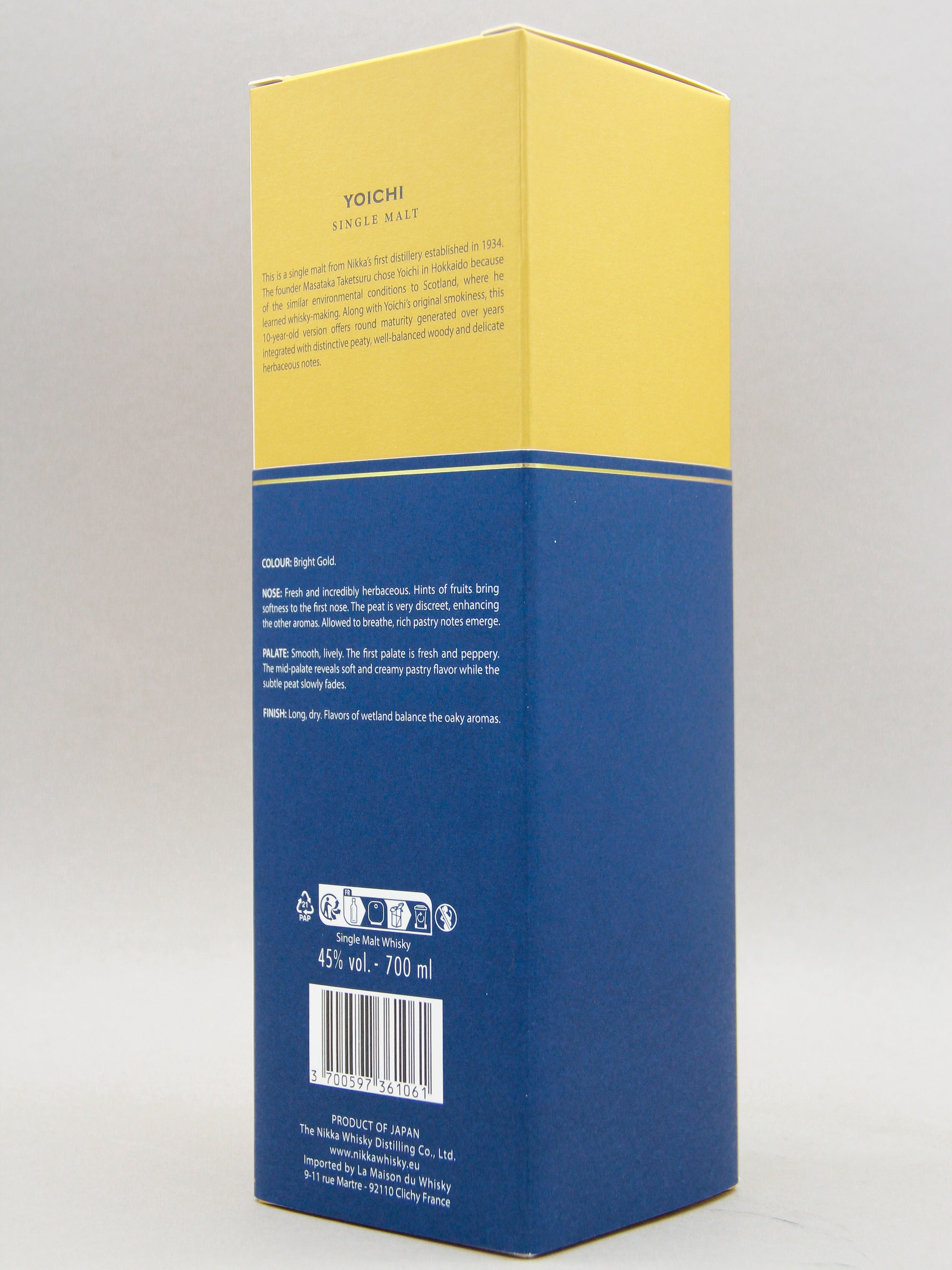 Masataka Taketsuru chose Yoichi in Hokkaido because of the similar environmental conditions to Scotland. Along with Yoichi's original smokiness, this 10 year old version offers round maturity generated over years integrated with distinctive peay, well-balanced woody and delicate herbaceous notes.